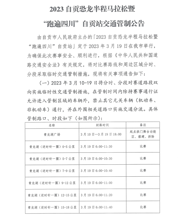 倒计时4天︱2023自贡恐龙半程马拉松暨“跑遍四川”自贡站交通管制通告