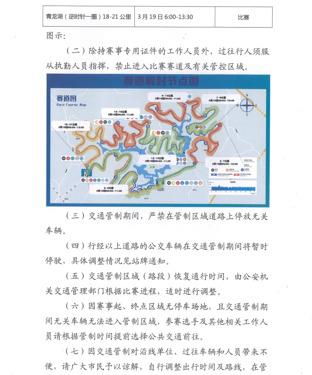 3月19日,参赛选手及工作人员可凭号码牌、工作证、志愿者服装免费停车。