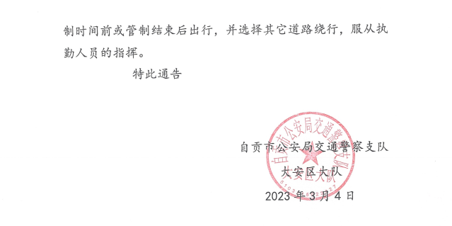 为确保比赛顺利进行,比赛期间将对部分道路和有关区域采取临时交通管制。实行交通管制期间,将给广大市民及来自贡参赛、旅行的人员出行带来的不便,请给予谅解和支持,现将有关事宜提示如下: