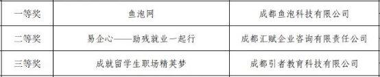 来自高校、创投机构的专家评委就创新引领性、商业前景、创始人及团队综合能力等对参赛项目进行客观点评、重点发问、严格打分。最终,初创组和成长组分别评选出一、二、三等奖各1名,将代表四川参加全国比赛。创业新星奖和创业明星奖各9名,并颁发荣誉证书和奖金。四川省创新共同体人才服务有限公司的“人力资源服务产业线上园”项目获得初创组一等奖,成都鱼泡科技有限公司的“鱼泡网”项目获得成长组一等奖。